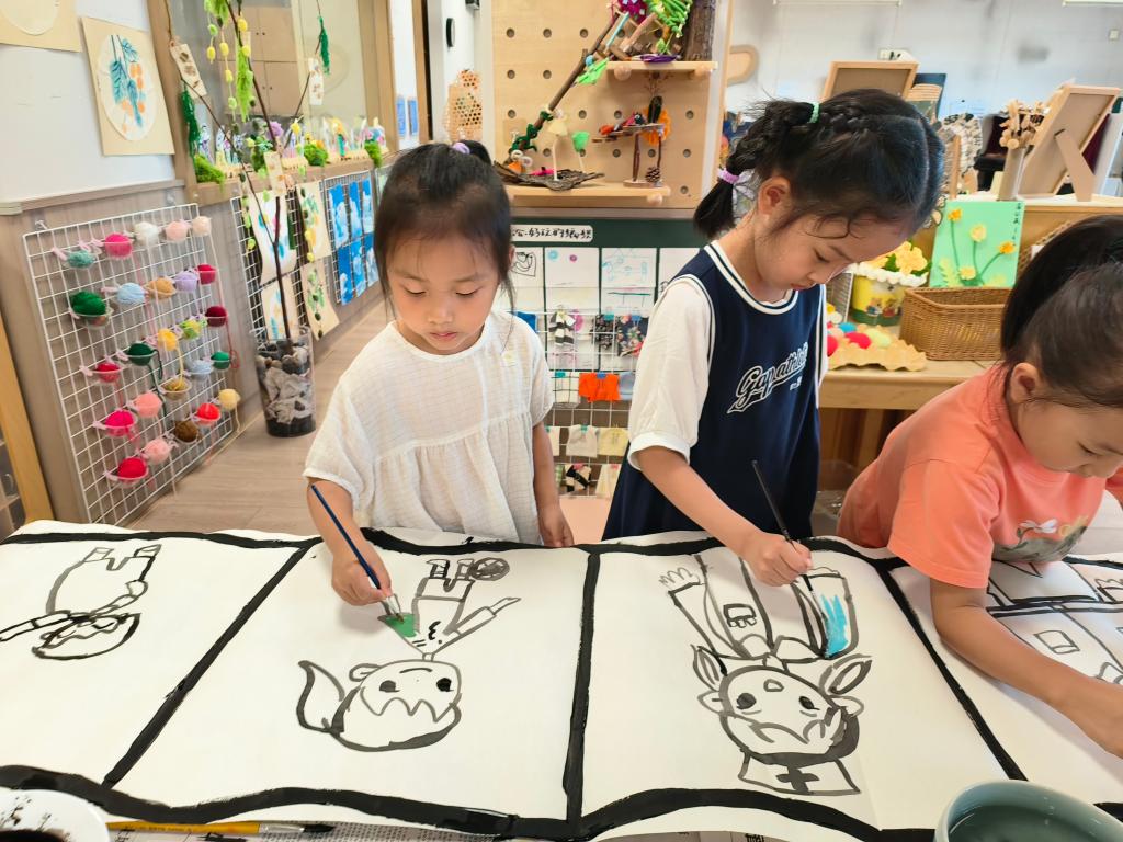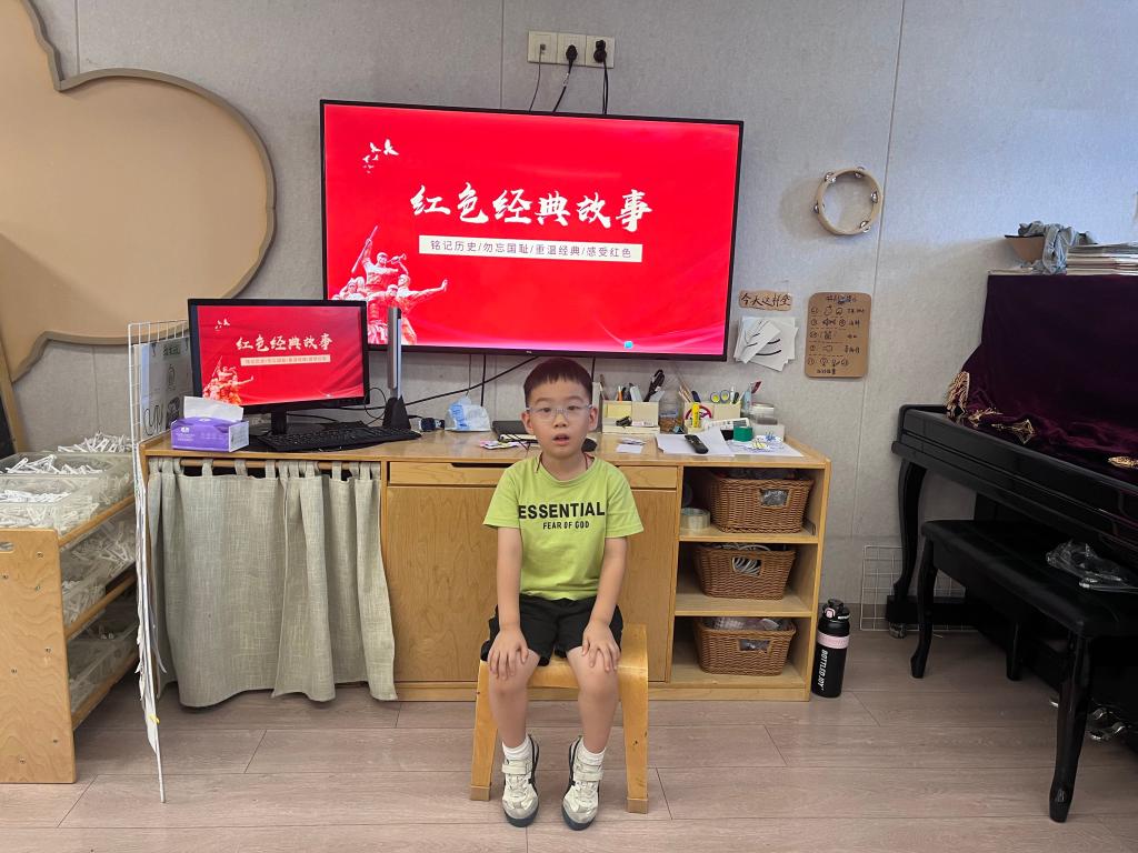 大班组开展的“童声童语颂英雄——我心中的英雄”故事会,通过主题讨论引导幼儿理解英雄的多元含义,让幼儿与家长共同准备英雄故事;开展的“童心画英雄——我心中的榜样”绘画活动,借助绘本、短视频帮助幼儿了解身边的医护人员、消防员、军人等榜样,随后创作绘画心中的榜样。开展的“童心向祖国——九三阅兵”主题活动,通过动画故事介绍抗日战争情况,了解9月3日中国人民抗日战争胜利纪念日,最后播放九三阅兵直播视频,让幼儿进一步感受阅兵的意义。